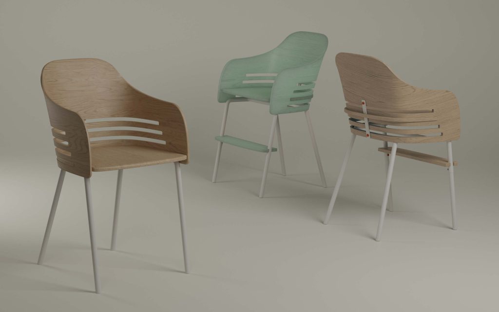 On the current market, there is al- ways a strong difference between an adjustable chair for children and regular chairs. The Grown-Up can be combined with a version without the adjustability and would be possible to order in a set.