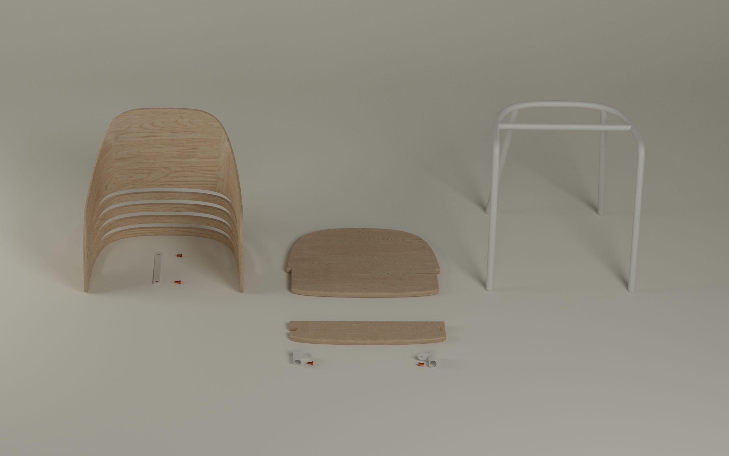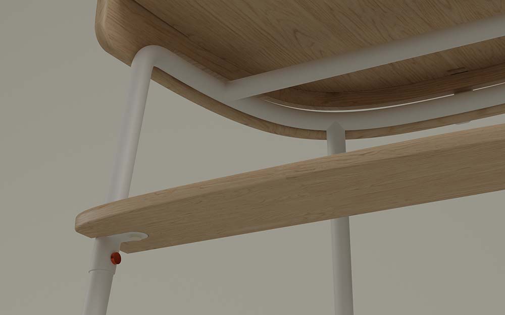 The Grown-Up chair aims to stay with youforyourentirelife.Fromtheage of around three years until you de- cide to give it away, it will grow with you as a child and stay stable and mature-looking until you are grown up. Four slots in the back of the sea- ting area, combined with a freely movable footboard enable the right adjustments for any age and size, all while functioning as a regular, clean- ly designed piece of furniture, suita- ble for any living or dining room.